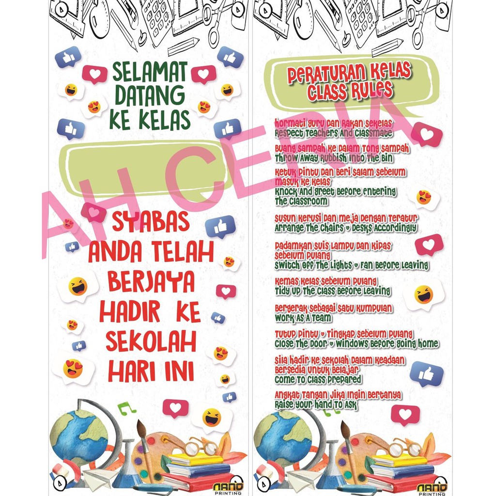 Untuk makluman anda, saya juga telah menyediakan templat grafik sekiranya anda ingin menyunting atau mengedit peraturan kelas ini.