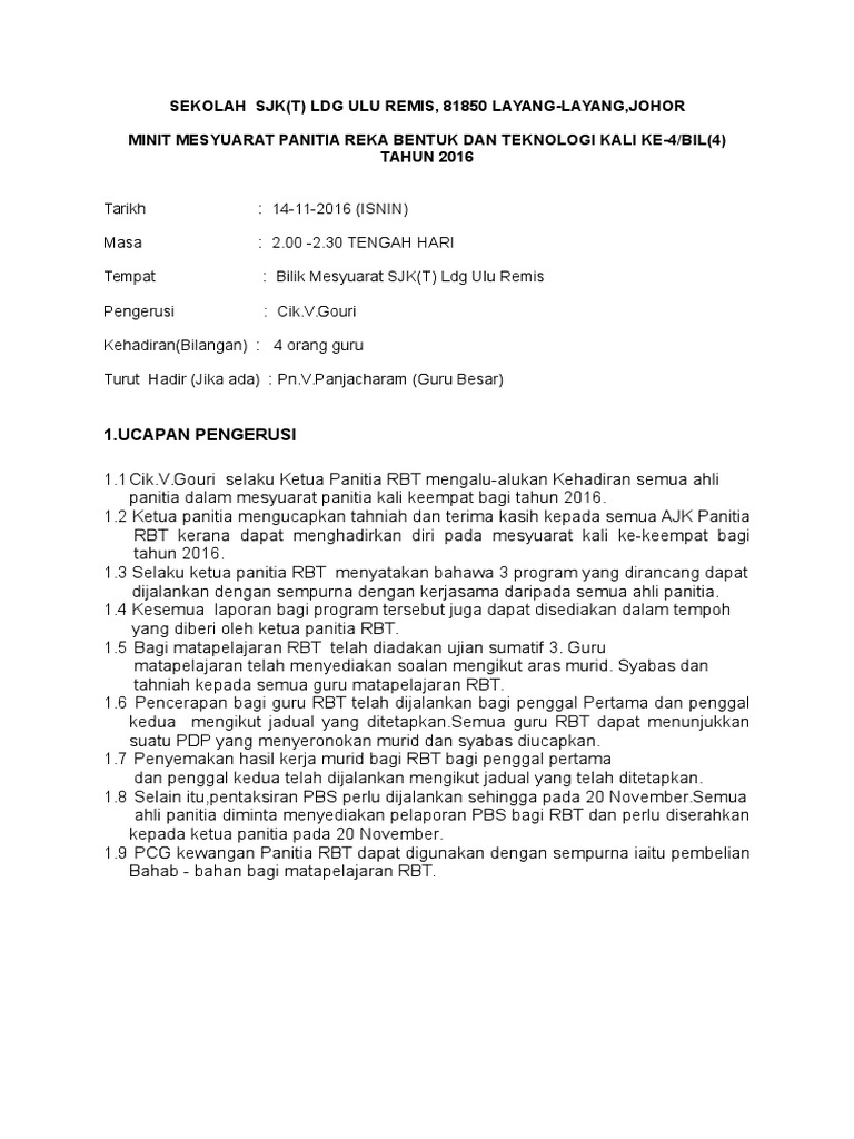 3.1 mesyuarat bersetuju dengan perlantikan jawatankuasa murid seperti berikut: 100%(2)100% found this document useful (2 votes). Download minit mesyuarat kali kedua. South kedah crc, kulim, kedah. 14.4 kajian tindakan dan program peningkatan kualiti dijalankan bagi.
