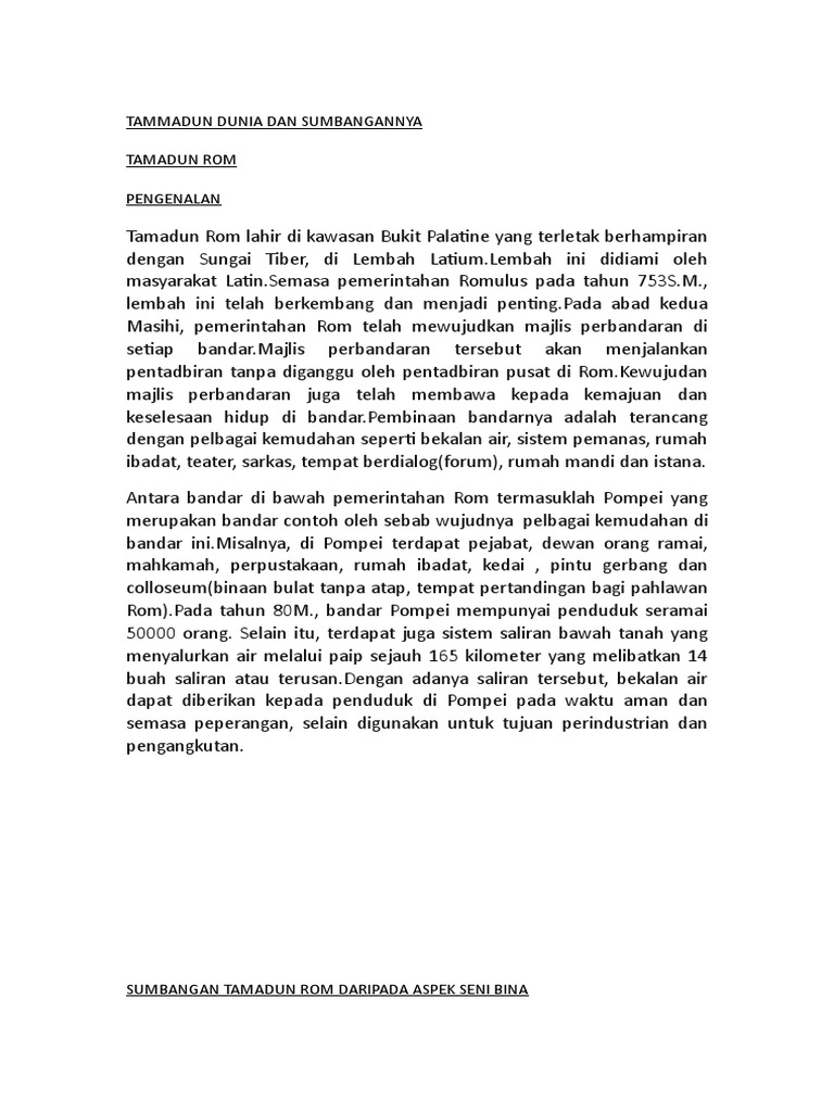 Tamadun Rom from imgv2-2-f.scribdassets.com Kepercayaan dan motif pada seni bina dan seni ukir. Posted by unknown in seni bina. Terangkan sumbangan tamadun china dalam bidang seni bina kepada peradaban dunia. Watch kl special force world quran hour 2018 yuna bertunang dengan adam sinclair warisan islam di malaysia yayasan bank rakyat. Jalan raya rom amfiteater mula dibina tahun 500 sm dengan tujuan : Masyarakat tamadun rom maju dalam pembinaan jalanraya, pancutan air, saliran air. Pengenalan tamadun rom tamadun rom merupakan kesinambungan daripada tamadun yunani kerana sering dirujuk sebagai zaman klasik peningkatan seni bina tamadun rom pepatah ada menyebut; Kubah o kubah memiliki dua fungsi iaitu sebagai penunjuk arah kiblat jika dilihat dari sisi.